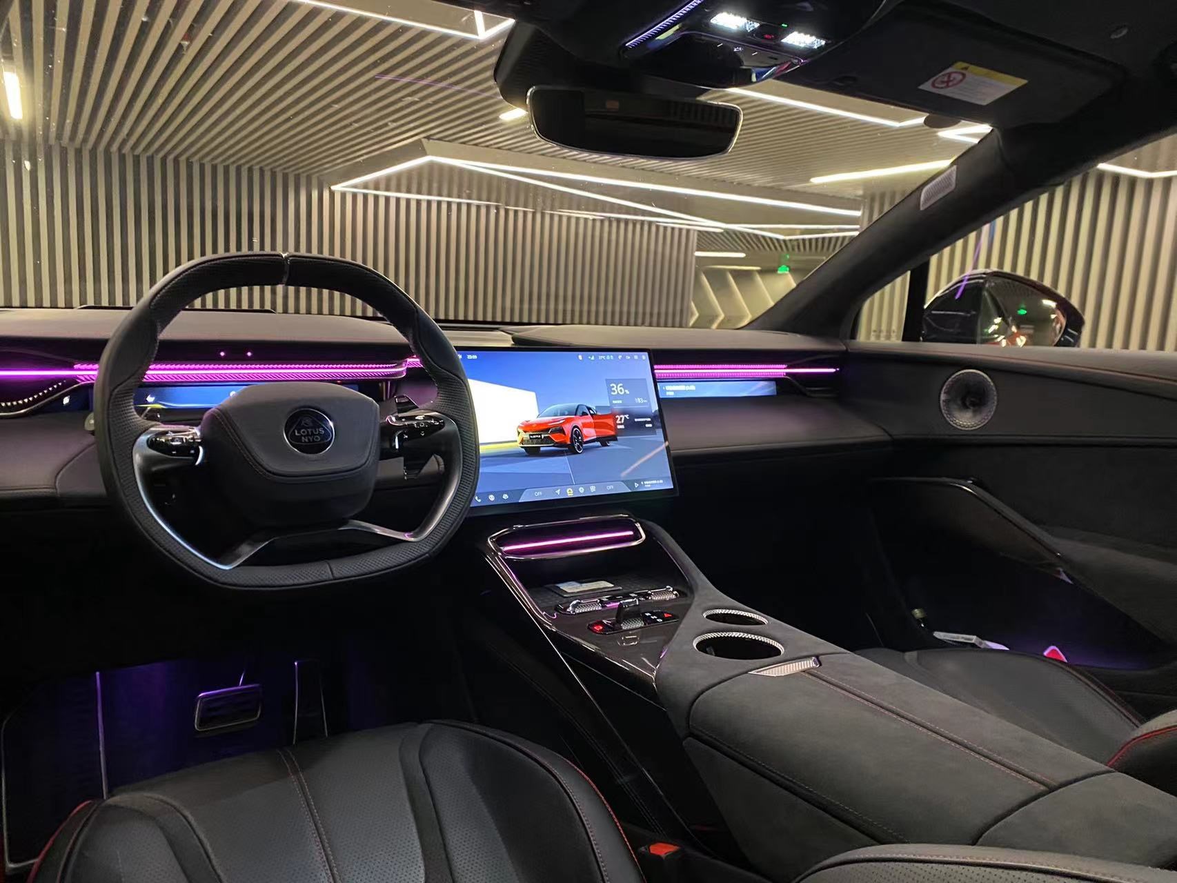 打開無邊框車門進(jìn)入內(nèi)飾,路特斯Eletre可以說很好的詮釋了什么叫運(yùn)動(dòng)與科技感的碰撞,車內(nèi)大量采用了Alcantara與碳纖維的包裹,讓筆者充滿駕駛的欲望。