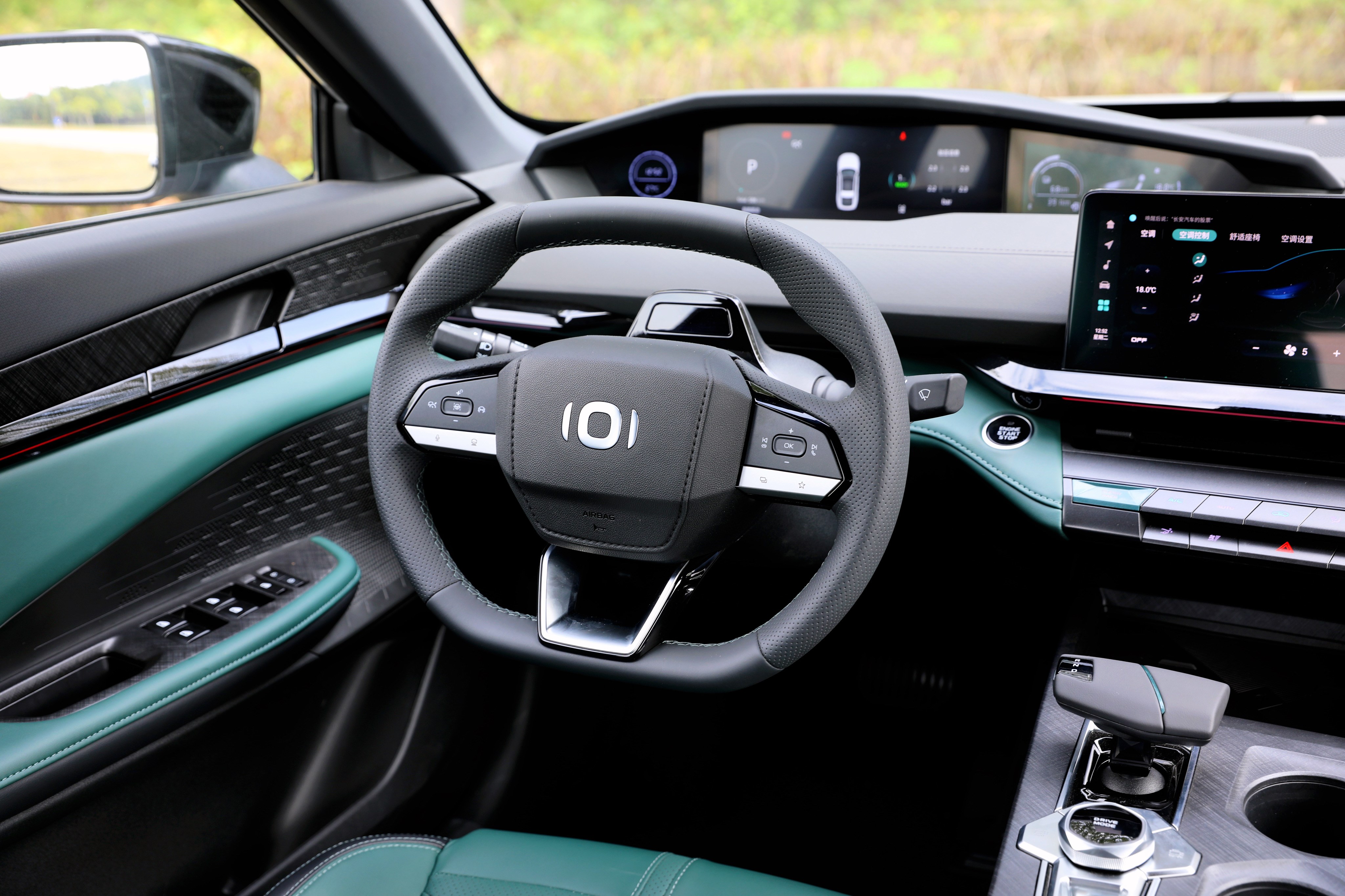 進入車內(nèi),長安啟源A06座艙風(fēng)格很獨特,富有層次感的造型讓你第一眼會感覺很復(fù)雜,但是仔細品味一番后,它特殊的風(fēng)格可以說是別有一番風(fēng)味。啟源A06提供流沙白和林蹤綠兩種面料配色,個人更喜歡林蹤綠的配色方案,更能體現(xiàn)出動感、時尚的一面。